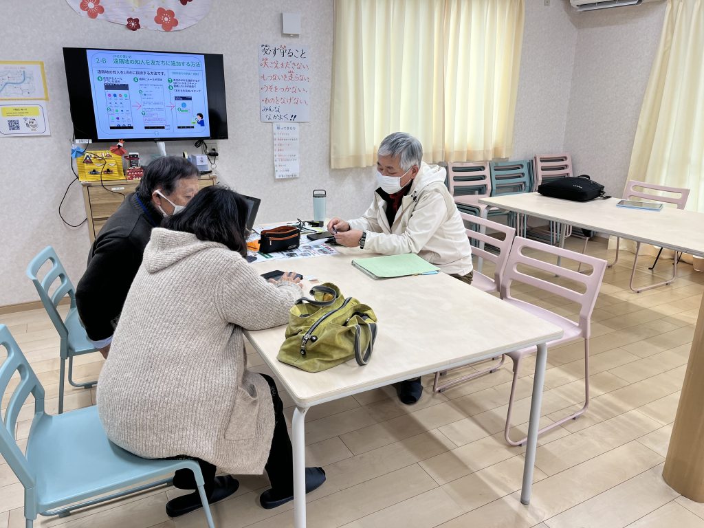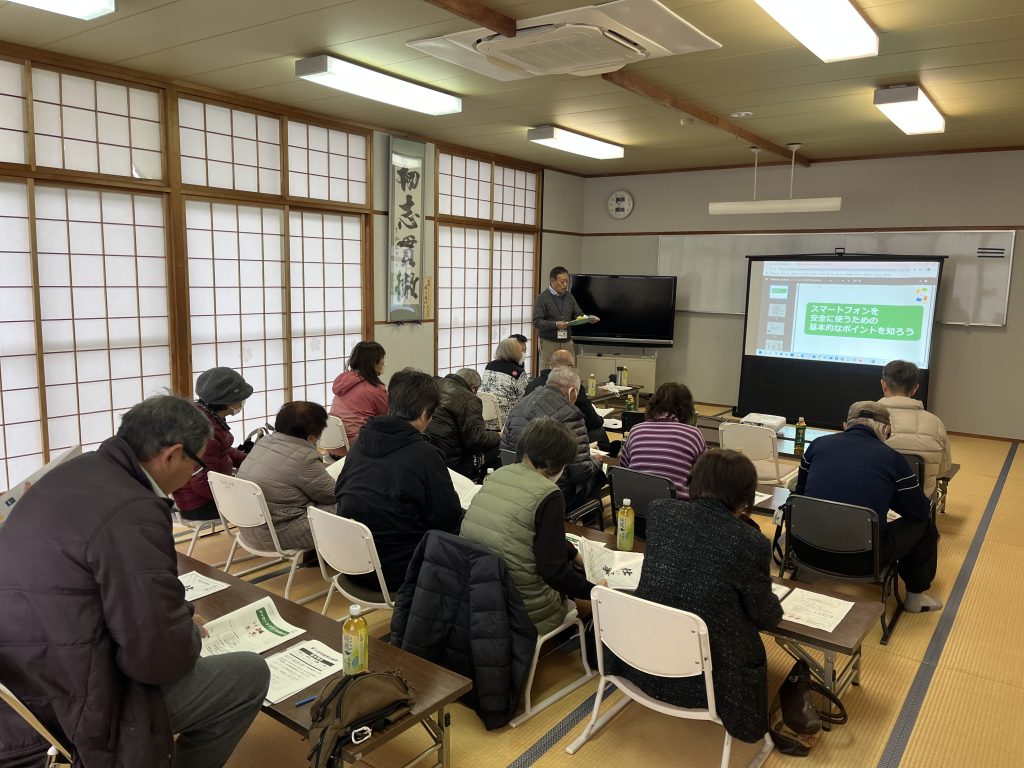 公民館でプロジェクターとテキストを使ってのご説明風景